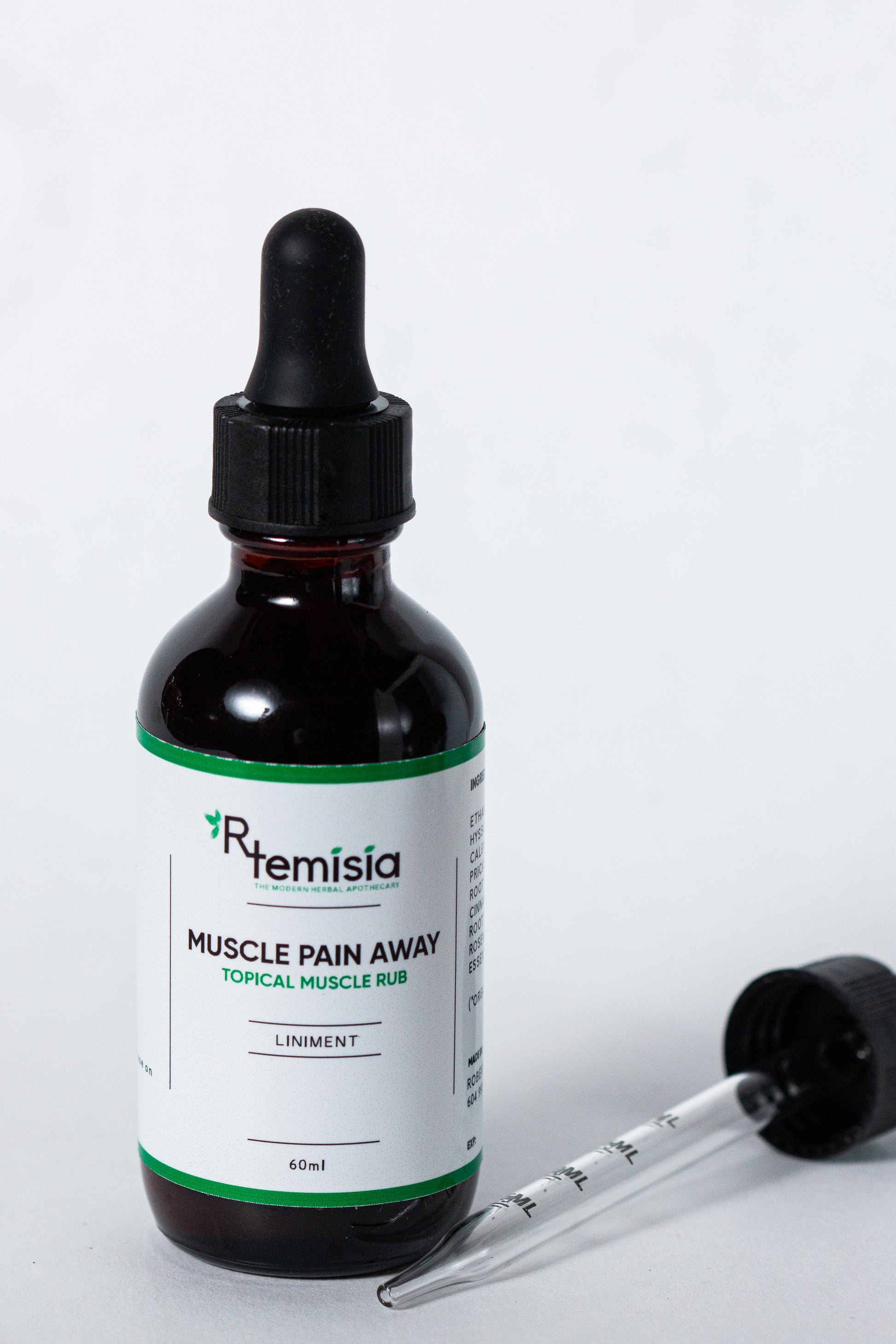 Muscle Pain Away Topical Rub is a liniment, which is a fast and effective blend of herbal tinctures and essential oils applied topically to lessen the discomfort of muscle pain. A liberal amount can be applied to sore muscles multiple times per day.